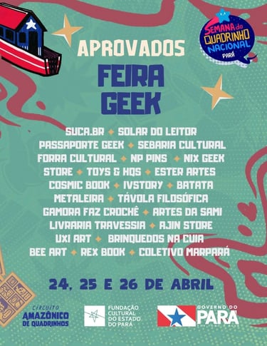 A Semana Nacional do Quadrinho ocorrerá nos dias 24, 25 e 26 de abril de 2025, na cidade de Belém do Pará, no espaço Curro Velho, que fica na Rua Prof. Nelson Ribeiro, 287 - Bairro do Telégrafo.
